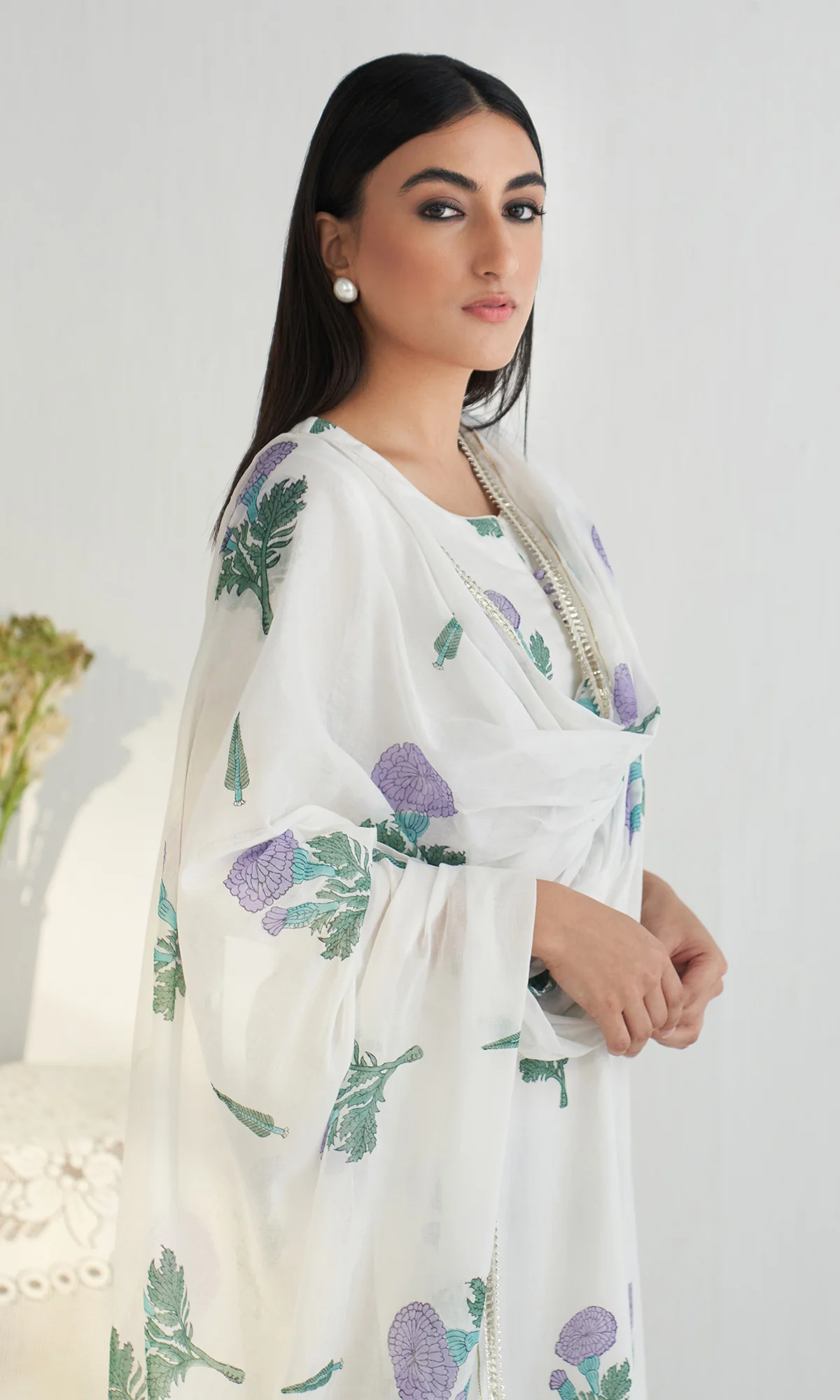 This set includes block printed kurta with palazzo and dupatta. Kurta is detailed with loopi buttons . Dupatta isfinish with gota lace.This set includes block printed kurtawith palazzo and dupatta. Kurta is detailed with loopi buttons . Dupatta is finish with gota lace.